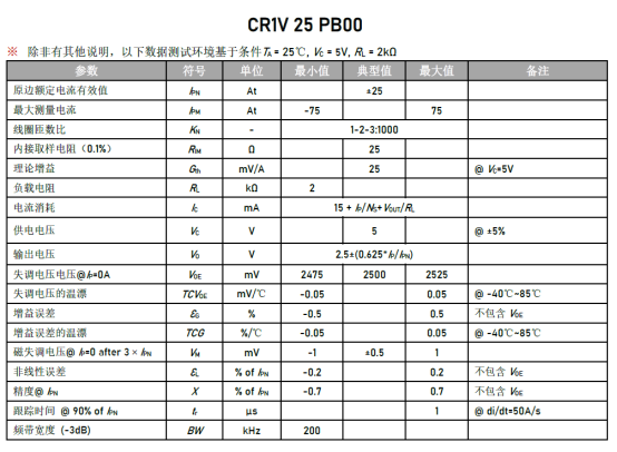 压缩机电流监测 | CR1V 25 PB00(适用于主流家用变频空调压缩机) | 高带宽、安全隔离、高精度 |