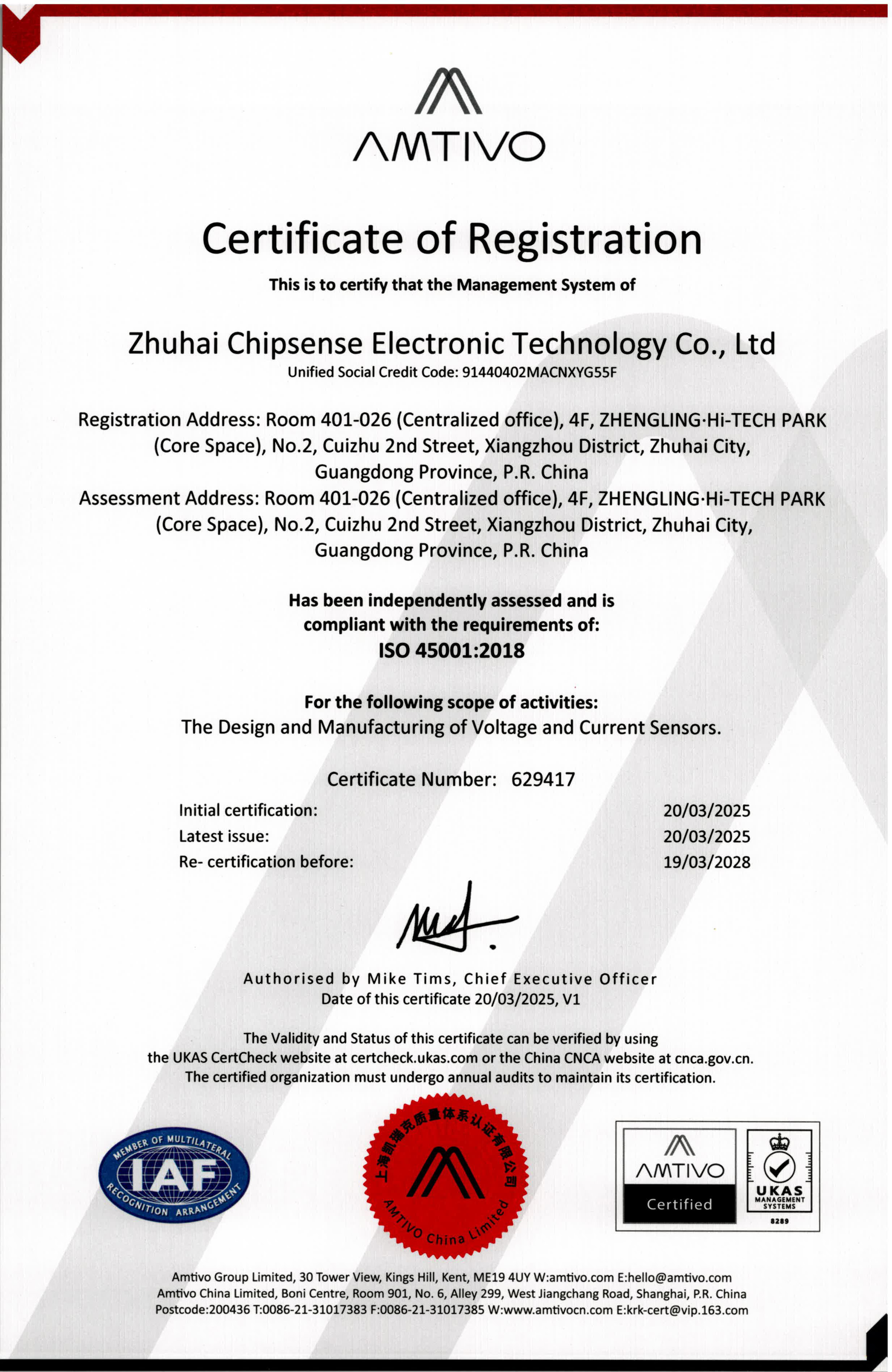 作为国内高精度电流传感器领域的创新标杆,芯森电子始终将"以人为本"理念贯穿于生产经营全过程。在公司高层领导的鼎力支持下,各中心、基地、各职能部门全力配合,严格按照标准通力建立ISO45001:2018职业健康安全管理体系。