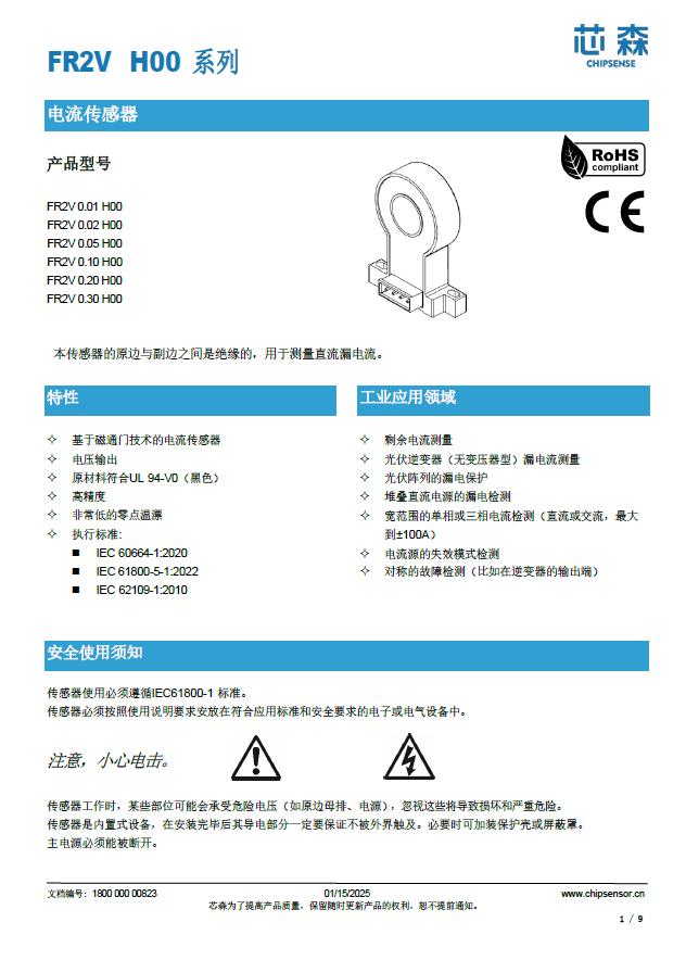 l FR2V H00系列采用了磁通门技术,专攻微小直流漏电流的精准测量(可测mA级别电流)。它具有高精度和极低的零点温漂,能够可靠地检测出不易被发现的异常信号。