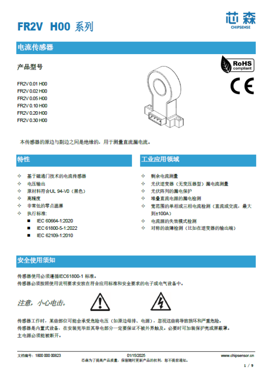 执行国际标准:芯森电子FR2V 系列传感器严格遵循IEC 60664-1:2020、IEC 61800-5-1:2022、IEC 62109-1:2010等国际电工委员会制定的标准,确保产品的质量和安全性。此外,传感器内部的电气间隙距离和爬电距离均符合相关国际标准,进一步增强了其在恶劣环境下的绝缘性能。