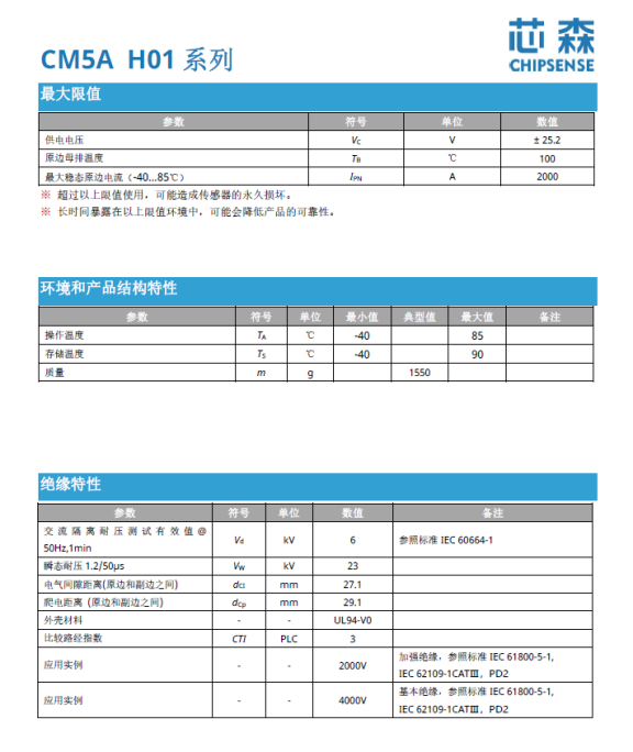 超强绝缘与可靠性 :CM5A 系列电流传感器原边与副边之间绝缘,采用符合 UL 94-V0 等级的原材料,确保在复杂恶劣环境下的可靠运行。其交流隔离耐压测试有效值达到 6kV,瞬态耐压 1.2/50µs 可达 23kV,充分满足巴西光伏市场对于传感器绝缘性能的高要求。