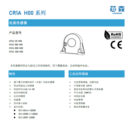 CR1A系列是基于霍尔原理的闭环(补偿)电流传感器,原边与副边之间是绝缘的,无插入损耗,用于测量直流、交流和脉冲电流。具有优异的线度和精度,低温漂等特性。