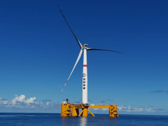 漂浮式风电是可在水中漂浮并捕捉风能发电的海上风电装置,采用动态海缆传输电力。其结构组成有:浮体模块、锚固系统、动力传输和风机配置。风机搭载抗台风型机组,最高可抵御17级台风,极限风速达60米/秒。相比一般固定式的海上风电,漂浮式风电可以在离海岸线100公里以外超远距离工作,为深海作业区域提供电力。安装于距海南文昌136公里的“海油观澜号”装机容量达7.25兆瓦,投产后,风机年发电量将达2200万千瓦时,所发电力用于油气生产,每年可节约燃料近1000万立方米天然气,同时减少二氧化碳排放2.2万吨,环保效果显著。