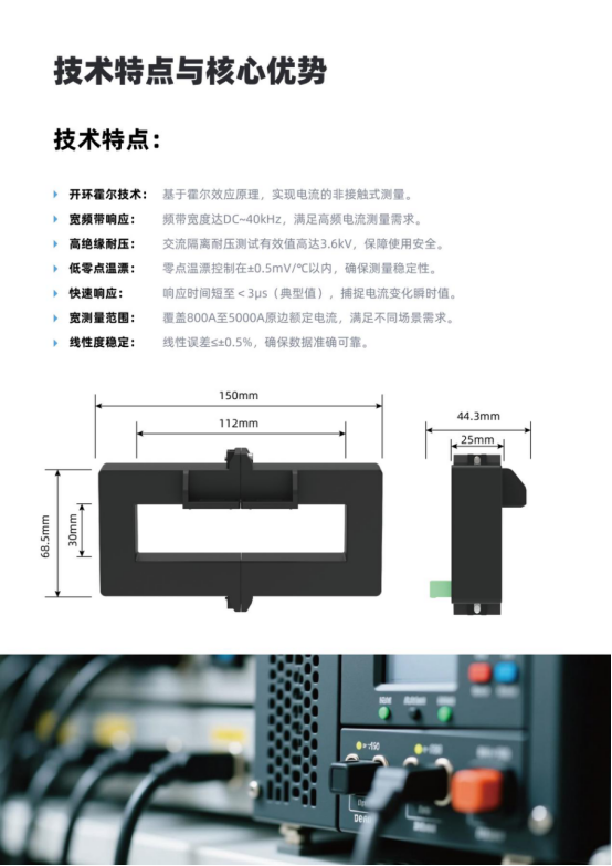 • 轨道交通电力推进:为机车、船舶的牵引逆变器提供电流反馈,适应-40℃~85℃宽温工况与振动环境,免断电安装特性满足车辆段运营期间的改造需求。