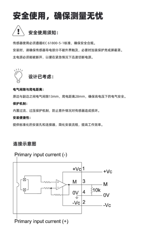 • 供电要求:需满足±15V供电电压,确保传感器正常工作与测量精度。