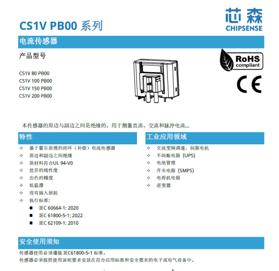 · CS1V PB00系列凭借其高精度、强绝缘、快速响应等特性,已成为国产电流传感器排行榜中的优选方案。