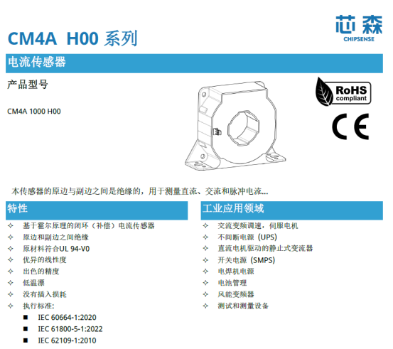 储能系统电压等级高(达到1500V+甚至更高),非隔离测量易导致共地干扰,甚至引发触电风险。特别是在高压级联、组串式架构中,电气隔离是保障人身与设备安全的底线。这个时候,非接触式测量方案的霍尔电流传感器,原边与副边之间天然电气隔离,产品需具备较高的交流隔离耐压(如3.8-6kV)、瞬态耐压(如16-23kV)的高绝缘性能,无需额外隔离电路,显著提升系统EMC(电磁兼容)性能。