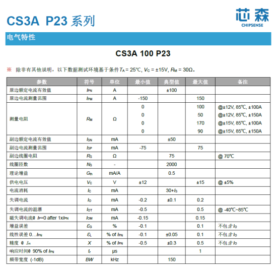 芯森CS3A P23系列(基于DS-CS3A P23-CN-V2规格书):