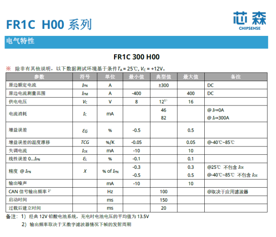 芯森FR1C系列(基于DS-FR1C H00-CN-V2规格书):