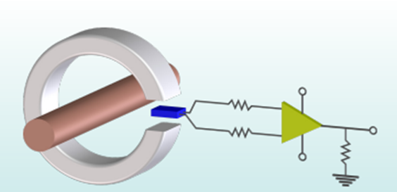 霍尔开环电流传感器是一种基于霍尔效应的电流传感器,可以将电流转化为相应的电压信号,并通过测量电压来测量电流。其原理是:原边电流 IP 产生的磁场,通过磁芯聚磁后,用 HALL 感应芯片在磁芯气隙处感应原边电流 IP 的大小和方向。HALL 感应芯片的输出电压,经过信号处理电路,使传感器的输出可以精确反映被测电流的大小。霍尔开环电流传感器就是利用这个效应,将电流产生的磁场转化为电压信号,并通过测量电压来测量电流。