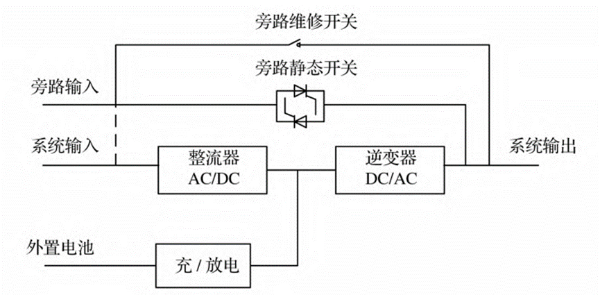 CM1A H00闭环霍尔电流传感器的典型应用场景之一为不间断电源(UPS)。不间断电源作为应急供电设备,可以储能,还可以输出恒压恒频的电源能量。在市网突然断电或者发生波动时,UPS可以为精密设备提供稳定的电压,保证设备的正常运转。常见的在线式UPS供电原理如下图所示: