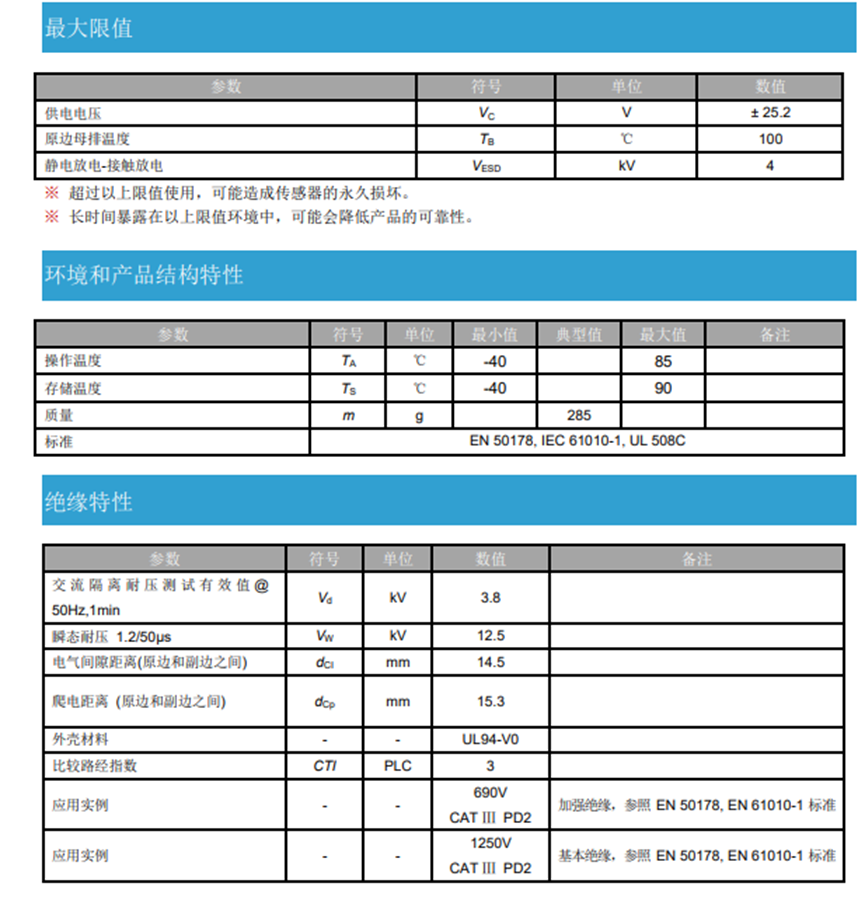 CM3A H00闭环霍尔电流传感器极限参数及特性